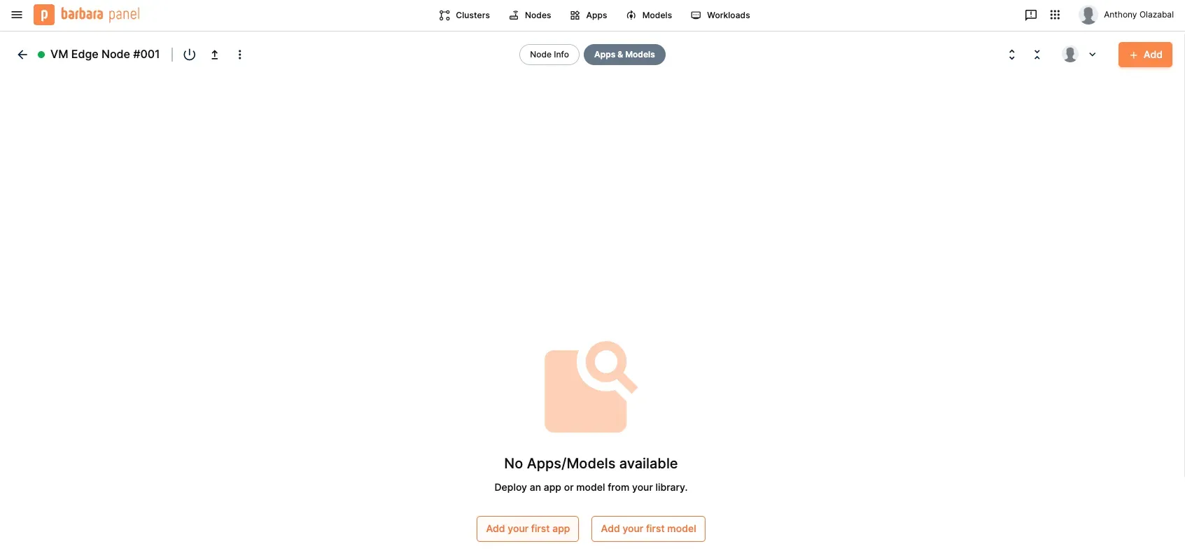 2. Select your node and navigate to the "Apps & Models" section.